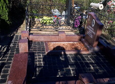 Облицевали бетон полированным гранитом, на территорию участка уложили брусчатку, предварительно приподняв памятник.